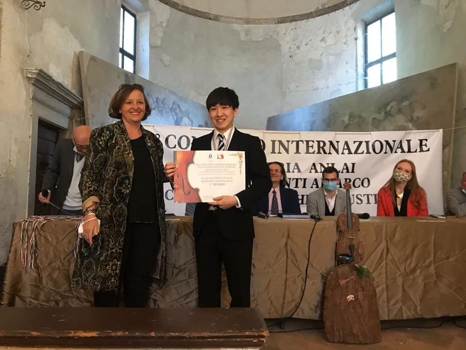Gold medal for cello at the 12th International ANLAI violin making competition in Pisogne, Italy in 2021